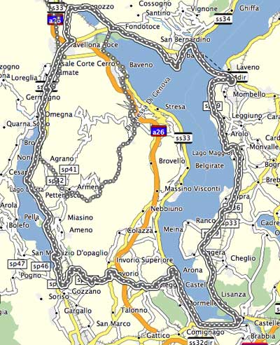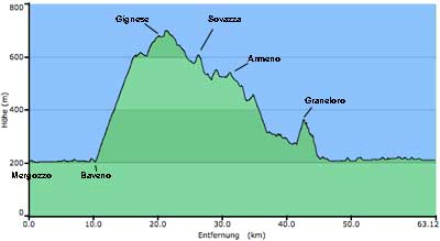 Pettenasco/Crabbia - Omenga - Gravellona Toce -Mergozzo - Pallanza - Verbania - Fähre nach Laveno - Cerro - Reno - Arolo - Ispra - Angera - Sesto Calende - Arona - Oleggio - Paruzzaro - Invorio - Bolzano - Gozzano - Orta S. Giulio - Pettenasco/Crabbia
